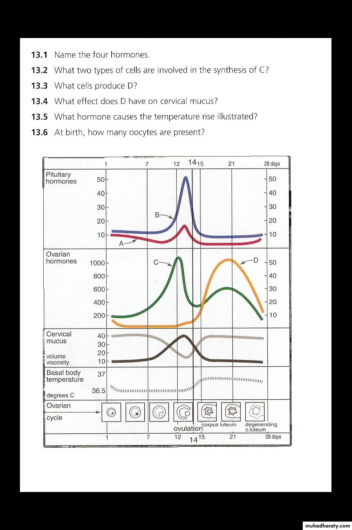 Female reproductive potential is directly proportionate to the remaining number of oocytes in the ovaries. This number decreases from birth onwards, and the rate of loss accelerates after the age of 37 in an average healthy women, or at an earlier age following long-term gonadotrophin deficit or exposure to toxins, e.g. chemotherapy. Research using ultrasound markers has looked at measurements of ovarian volume, mean ovarian diameter and antral follicle count to calculate ovarian reserve. Biochemical markers include FSH, Oestradiol, inhibin B, anti-Mullerian hormone (AMH). AMH is produced in the granulosa cells of ovarian follicles and does not change in response to gonadotrophins during the m.c. Serum AMH is high in patient with PCOS who are in danger of over response and hyperstimulation, and low in patients who are closer to menopause with low ovarian reserve.