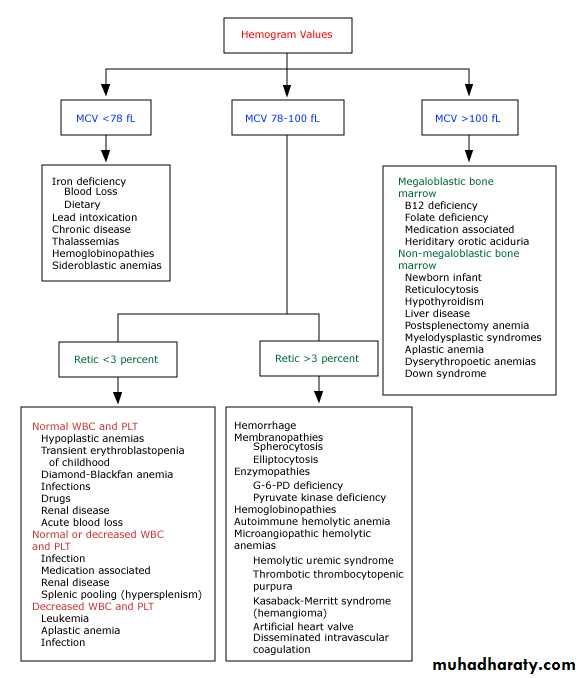 The workup should be directed towards answering the following questions concerning whether one or more of the major processes leading to anemia may be operative: