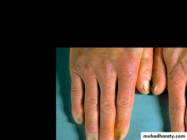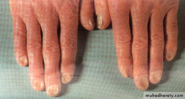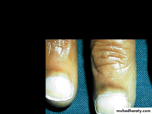 3- Nail lesions; thinning & flattening of the nails progress to brittle & spoon-shaped nail ( koilonychia)