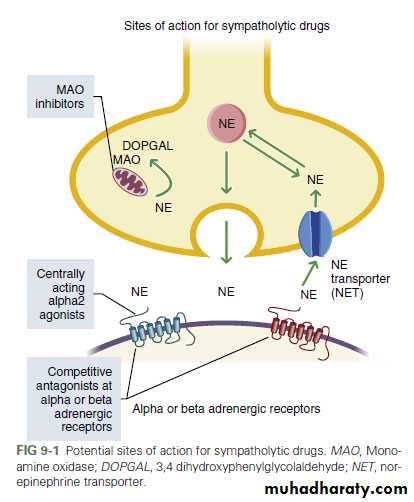 Monoamine oxidase (MAO) inhibitors are another example of drugs that have sympatholytic actions by a unique, non-receptor action.MAO is the intracellular enzyme responsible for inactivation of norepinephrine by