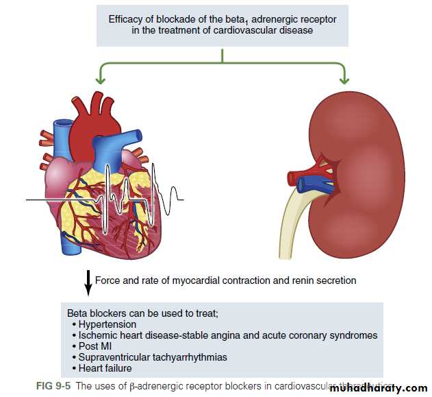 unwanted side effects of nonselective β blockers. For example, these agents can exacerbate peripheral vascular disease by blocking the vasodilatory effects of the β2-adrenergic receptor. In addition, they can