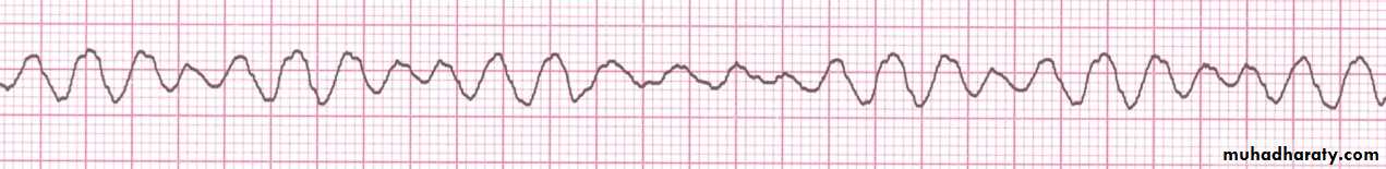 Ventricular fibrillation:This occurs in 5–10% of patients who reach hospital and is thought to be the major cause of death in those who die before receiving medical attention. Prompt defibrillation restores sinus rhythm and is life-saving. The prognosis of patients with early ventricular fibrillation (within the first 48 hours) who are successfully and promptly resuscitated is identical to that of patients who do not suffer ventricular fibrillation. Patients with VF are unconscious, cyanosed with detectable pulse or BP, it need urgent DC defibrillation.