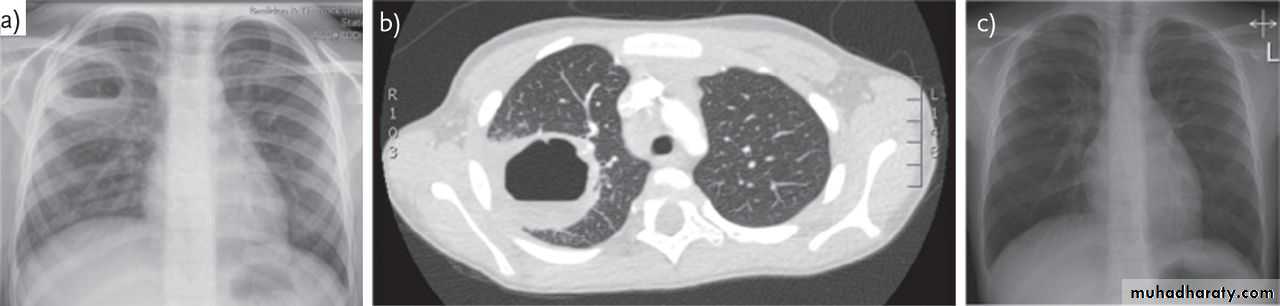1-Cavitating lung carcinoma2- Infected lung cyst or bullae