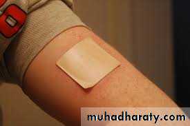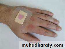 Solid adhesive preparation applied to skin to protect , sooth and lesser pain , and divided to 2 types :1- with medicament