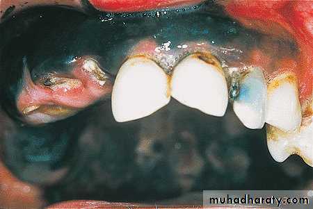 Pigmentation of the oral mucosa can occur as a result of environmental or occupationas exposure to heavy metal salts, such as mercury,Following absorption of the metals, they are deposited as metallic sulfides as a grey (or blue/black) line along the marginal gingivae.