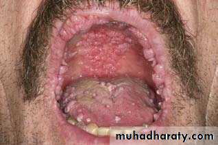 The oral mucosa is affected in a significant proportion of cases and the disease usually presents as coalescent white lesions on the buccal mucosae or palate