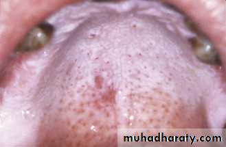 changes in the mucous glands of the palate.