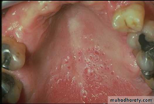 As a result of these changes, the palate becomes white and a number of nodules project from the surface
