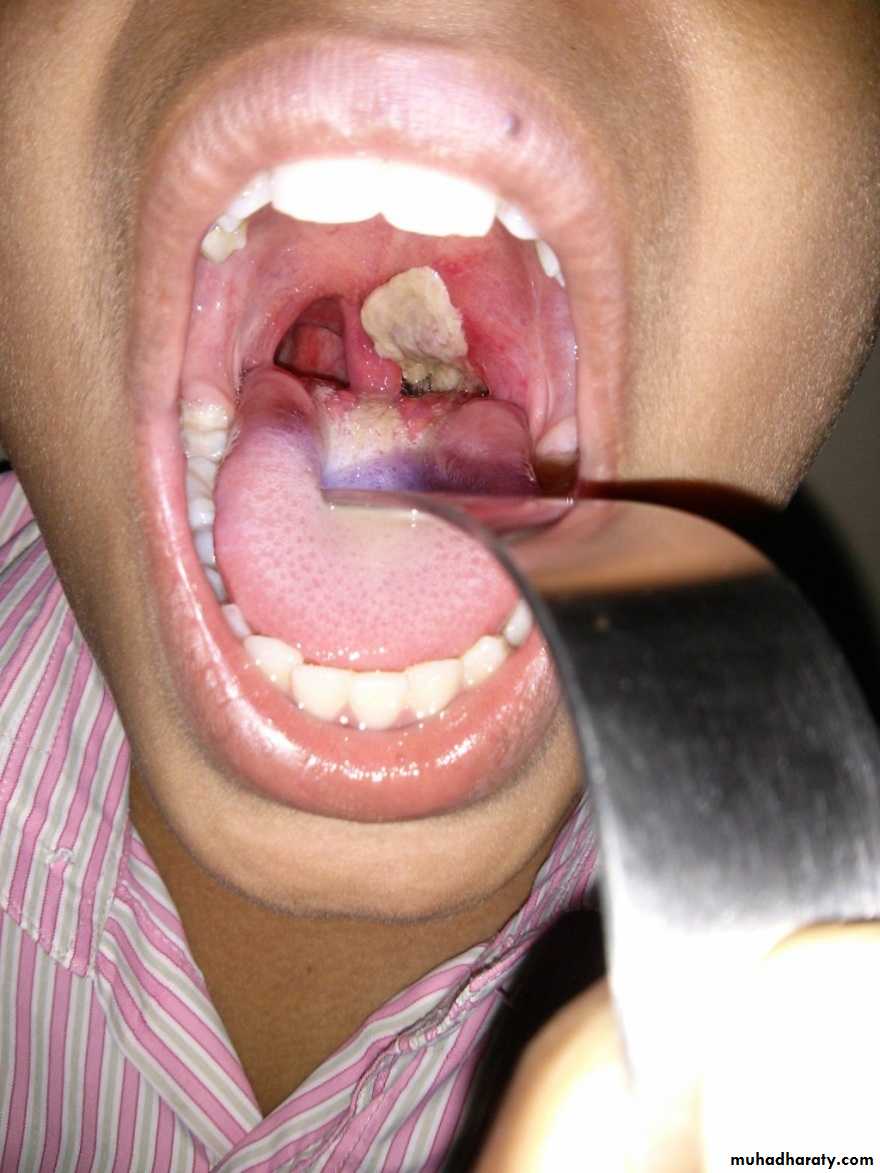 Acute disease of the upper respiratory tract usually involves one or more of the following: tonsillar zones, larynx, soft palate, uvula, and nasal cavities.