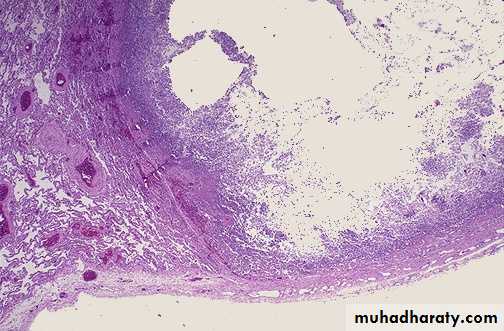 5-Necrotizing inflammation caused by powerful toxins e.g. Cl. Perfringens lead to gangrene & parasite (Entamoeba histolytica).