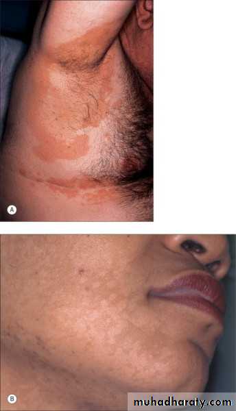 Usually asymptomaticMalassezia is lipophilic: therefore,(1) seborrheic regions, in particular the upper trunk and shoulders, are the favored sites of involvement and (2) adolescents are frequently affected.