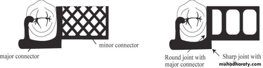 1.sufficient rigidity . Like the major connector, the minor connector must have sufficient bulk to be rigid to transmit forces between the linked components.2. must not impinge on marginal gingival tissues. Slight relief is required when crossing the gingival margin especially in tooth-mucosa borne dentures.