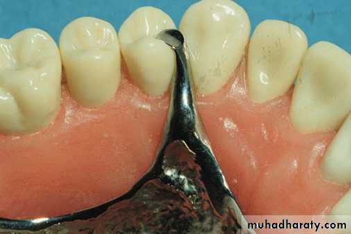 Proximal minor connector:Those that join the clasp assembly to the major connector.If the minor connector is located on a proximal surface of a tooth adjacent to edentulous areas, it should be broad buccolingually to provide strength but thin mesiodistally to minimize encroachment on the saddle area.
