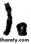 • 2- Another type of translocation called Robertsonian (centric fusion) type that takes place between two acrocentric chromosomes, either one from each group or two chromosomes of the same group but different number or the pair of a homologue where the two acrocentric lose their short arm (due to the breaks occur close to the centromere), Transfer of the segments leads to one very large chromosome & an extremely small one which will be lost and the carrier will have 45 chromosomes. Such loss is compatible with survival.