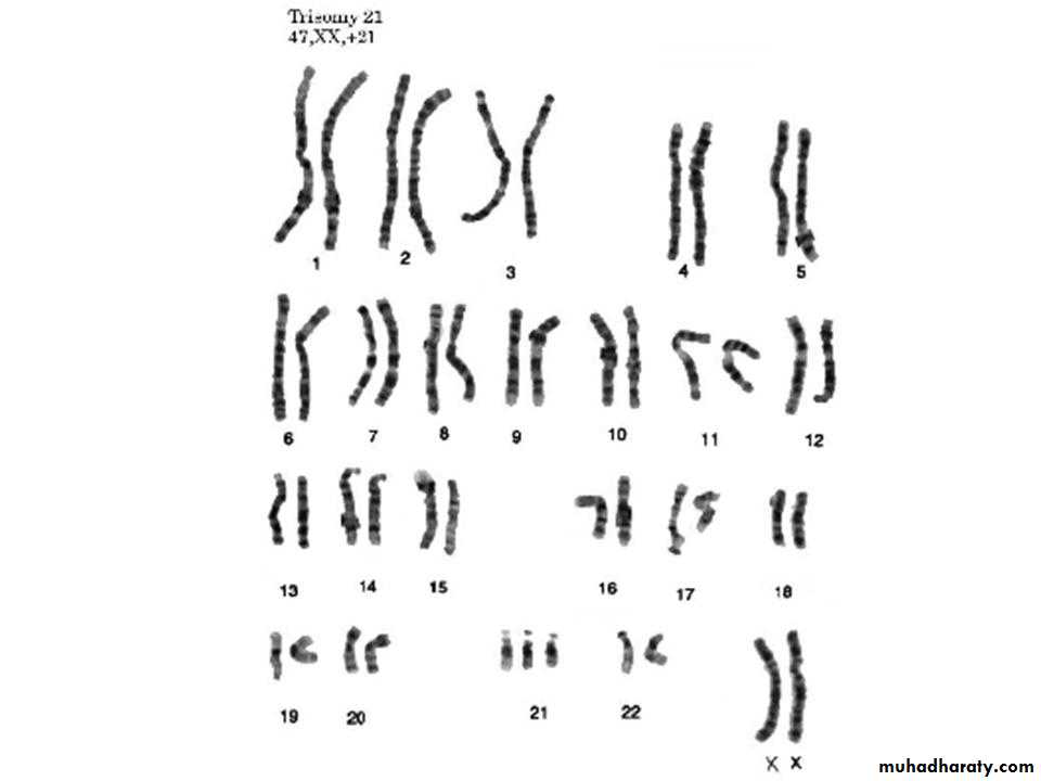 It is the most common chromosomal disorder.Cytogenetic types of Down’s syndrome:
