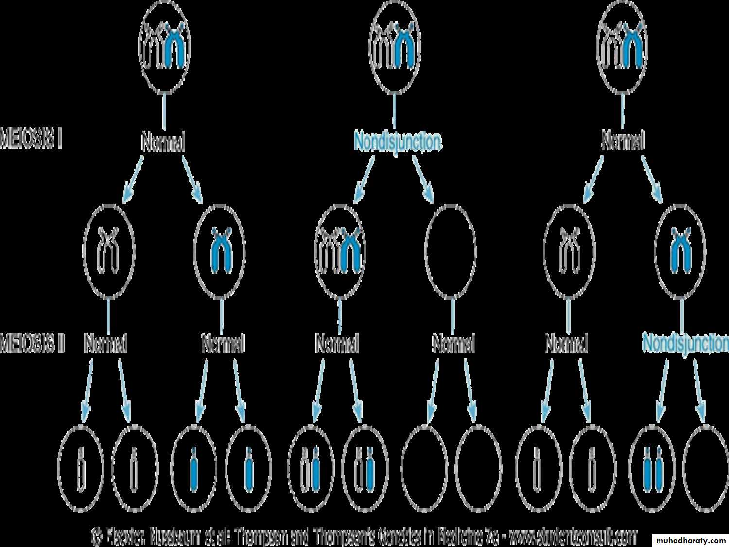 Fertilization of such gametes by normal gamete will result in two types of zygotes: trisomic with extra chromosome (2n+1) (e.g., Down s), or monosomic (2n-1) (e.g., Turner s).Monosomy involving an autosome is incompatible with life, whereas monosomy involving sex chromosomes & trisomy's of certain autosomes is compatible with life.