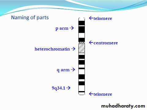 • In this case, the cell has a normal number of 46 chromosomes but they are morphologically or structurally abnormal.• Each chromosome has 2 arms p (short). and q (long).