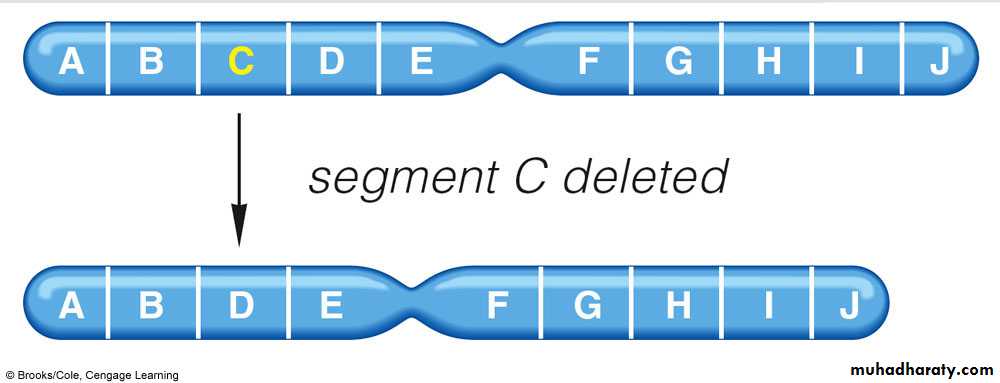 1. DELETION: involves loss of a piece of a chromosome that could be either: