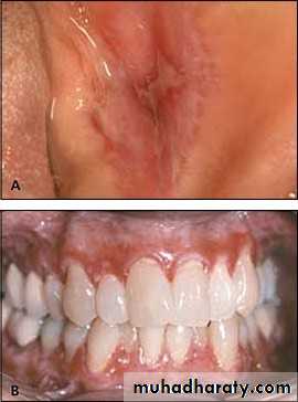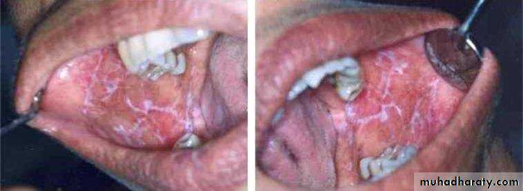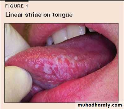 • Oral lesion:• White striated, atrophic or erosive areas