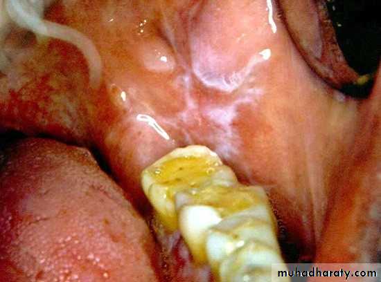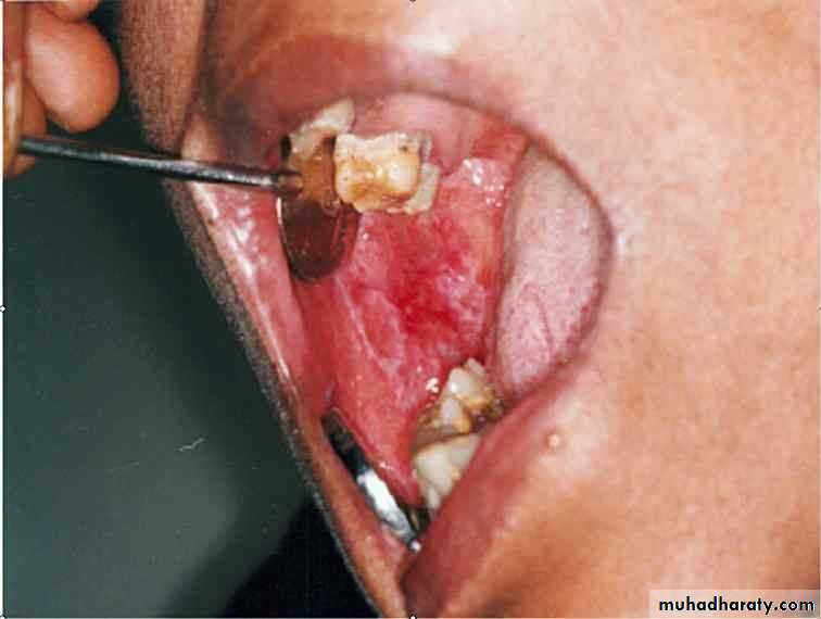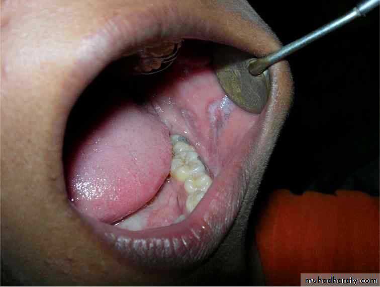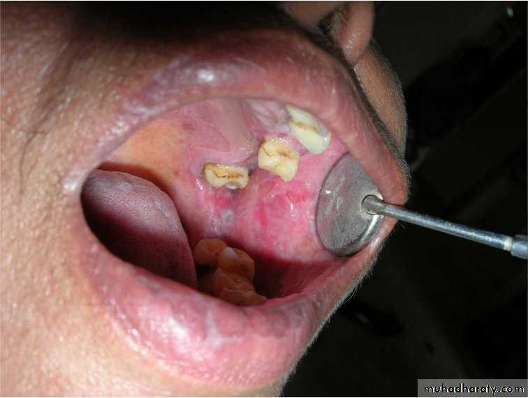 • Upper denture• Due to well fitting denture cutting the washing effect of saliva