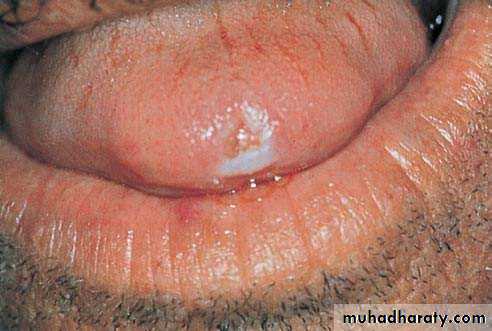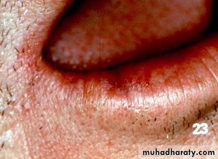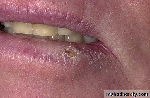 • Vermillion border of lower lip