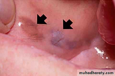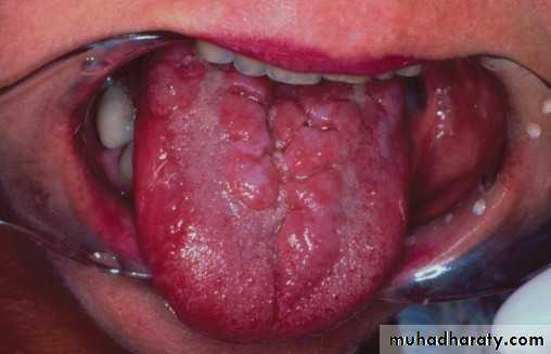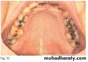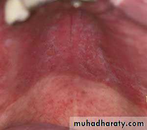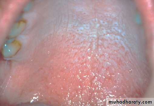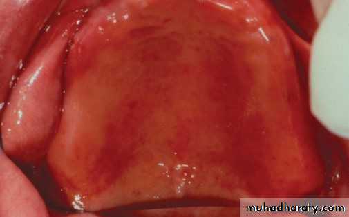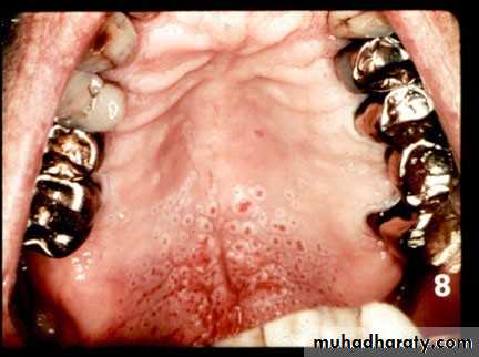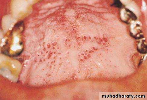 • Red macules• Mainly on hard palate , dorsum of tongue ,soft palate