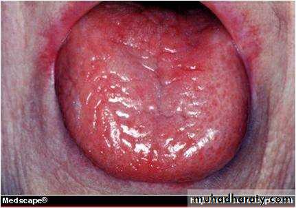 • Follow overuse of antibiotics• The whole mucosa: red & glazed