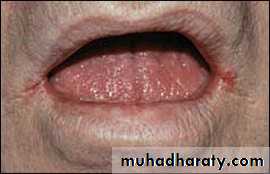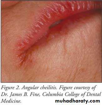 • Painless red area• Angular stomatitis