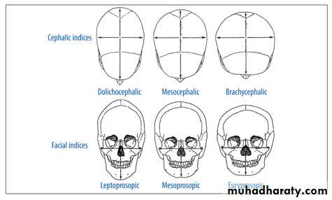 Mesocephalic : average skull (76-80.9)Dolicocephalic: long narrow skull ( equel or less than 75.9)