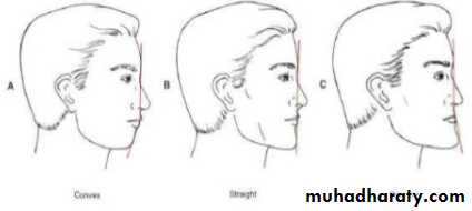 Straight/Orthognathic profile: The two lines form an almost straight lineConvex profile : The two lines form an acute anglewith the concavity facing tissues.this type of profile is seen in class II div 1 patients due to either a protruded maxilla or a retruded mandible.
