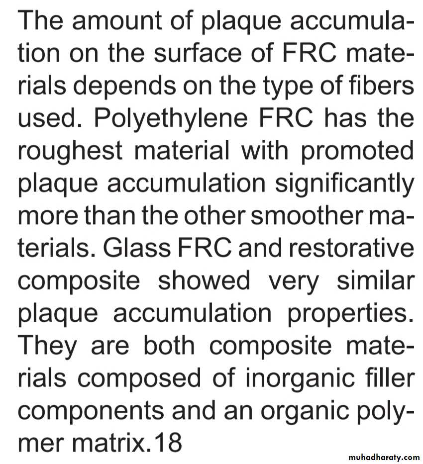 In addition, in FRC restorations the glass fibers are translucent and covered with veneering composites resulting in good aesthetic restorations, which do not increase plaque accumulation.