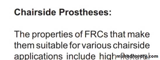 Prepared by : Mustafa moniem. Ari aso. Bahoz HimdadFiber-reinforced composite resin(FRC) prostheses offer the ad-vantages of good aesthetics, minimal invasive treatment, and an ability to bond to the abutment
