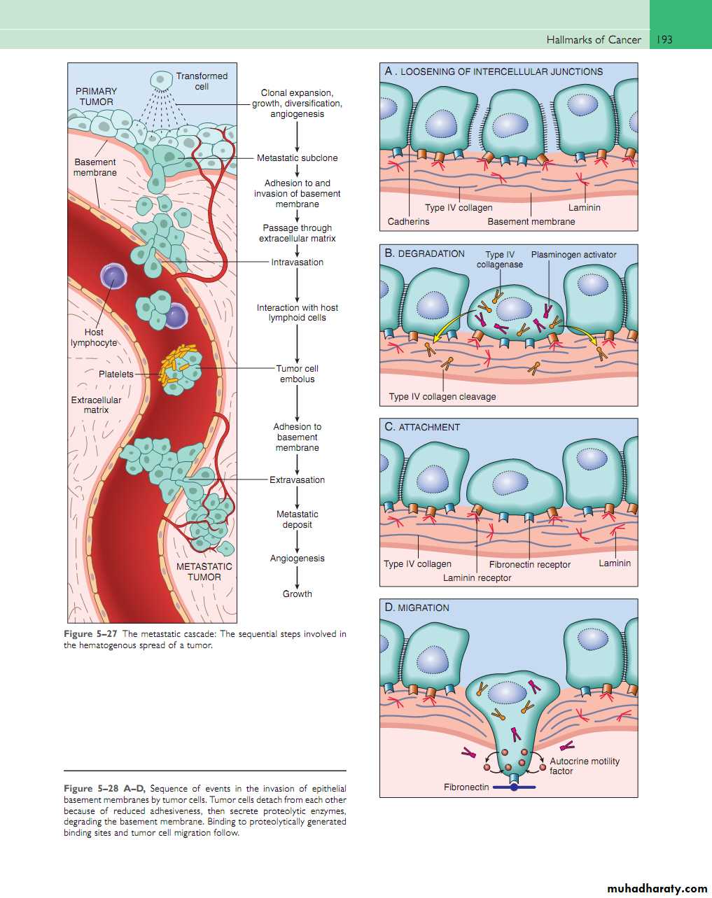 3- Tropism of particular tumors for specific tissues, e.g. prostatic carcinoma preferentially spreads to bone, this due to chemokines and tumor cells may have adhesion molecules whose ligands are expressed preferentially on the endothelial cells of the target organ.