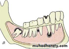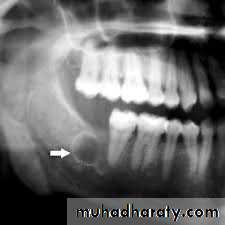 Odontogenic cysts ( dental cysts):1-periodontal cysts:is formed from epithelial rests or remnants in the periodontal membrane. These cysts are all of inflammatory origin. The usual location is along the lateral surface of the teeth. Which termed lateral cyst or at the apex of Cysts of inflammatory nature in edentulous area are termed residual. These result from incomplete surgical removal of pathological tissue at the time an infected tooth is extracted. These cysts are commonly lined by stratified squamous epithelium.