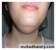 D. cyst are not easily discovered unless they cause swelling beneath the chin or up into the floor of the mouth on palpation. These cyst have a rubber like sensation.
