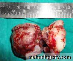 conservatively by local curettage. It has a tendency to recur and many operator now freeze the bony walls of the cavity with liquid nitrogen after curettage in an attempt to prevent this recurrence.b- Brown tumor of hyperparathyroidism