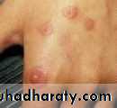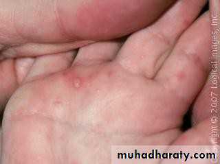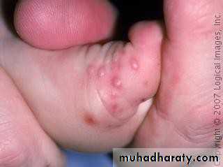• Cutaneous lesions:• Maculopapular lesion then turn to vesicles on erythematous base