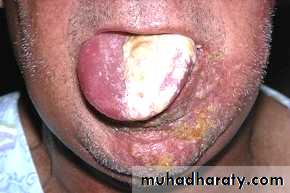 • Single, isolated ulcers, located on the side of the tongue, surrounded by an erythematous halo and resistant to usual treatments.• widespread mucositis and ulceration, mainly caused by cytotoxic drugs used for anti-tumor chemotherapy