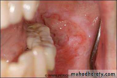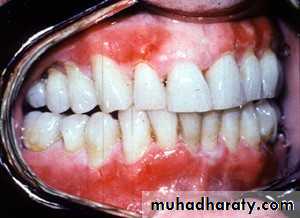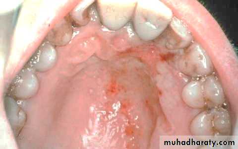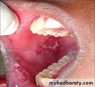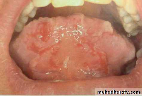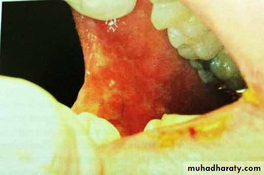 • a highly painful ulcerated area (most common areas are palate and gingiva)