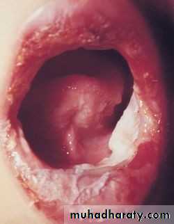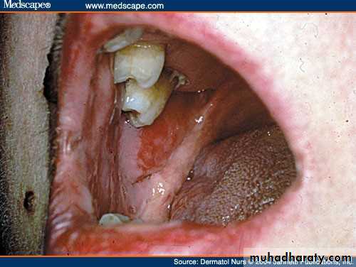 • Occasionally necrosis is destructive, causing perforation of palate and formation of persistent oronasal fistula.