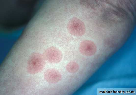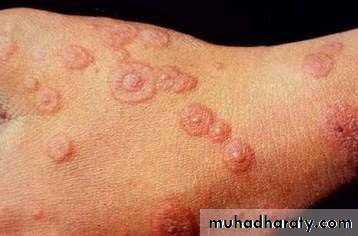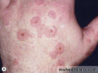• skin lesions: maculoppapular lesions,erythema nodosum (reddish ,painful, tender lumps )