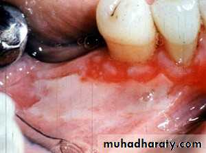 • 2. recurrent intraoral herpes: vesicles turn to ulcers ,mainly keratinized mucosa (gingiva –hard palate)