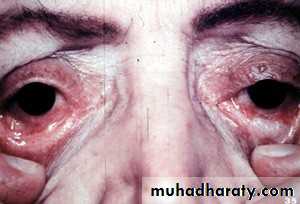 • eye lesions: (uveitis,retinal vasculitis , corneal inflammation)