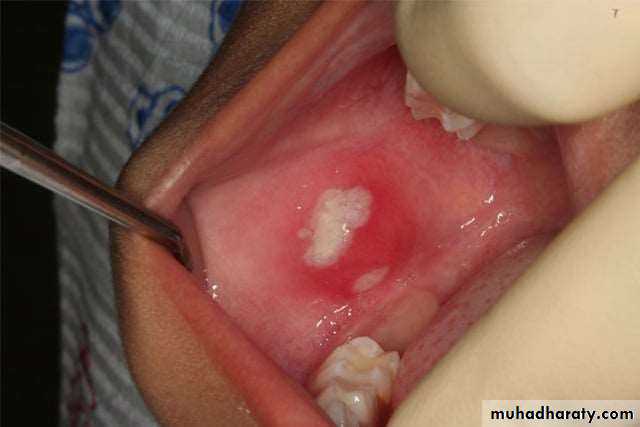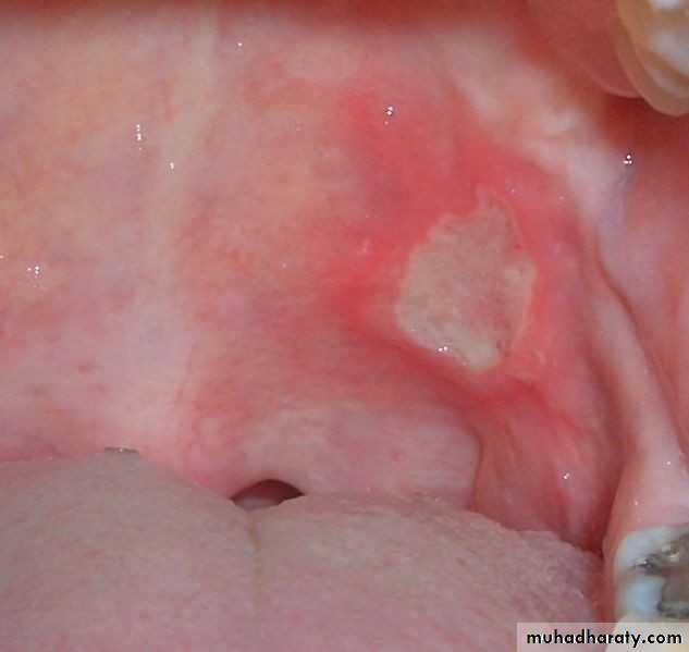 • Major aphthous: (1- 5cm)• Appears on keratinized and non keratinized mucosa.