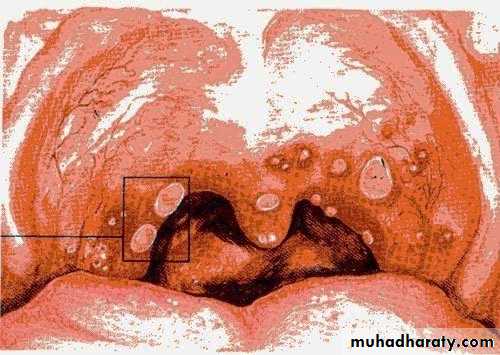 • ulcers mainly at post .area of oral cavity (soft palate , tonsils ,posterior pharynx)