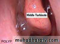 • Treatment Conservative; in early cases1.Antihistamine applied topically or systemic. 2. Topical steroid therapy. Beclomethasone aerosol spray often shrink existing polyps and prevent recurrence of those removed surgically. 3.Combination therapy. a. Oral prednisolone on a reducing dose regimen is given for 15 days starting with 60 mg/day b. steroid nasal drops(ophtamethasone) are administered four times daily for a month. c. An antibiotic is given for a week if there is infection . d.Antihistamine as well