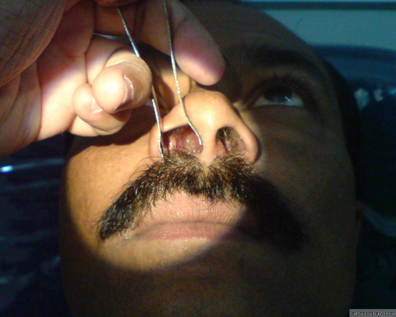 • Surgical Required when obstructive symptoms are established. 1. Minor procedures. Removal wilh the cold-wire snare 2. Major procedures are indicated for recurrent multiple polypi; for gross infection; or antrochoanal polypi. polypectomy may be performed by : (a) Intranasal . Functional endoscopic surgery(c) Exterrnal Sublabial antrostomy is used for recurrent antrochoanal polypi. .