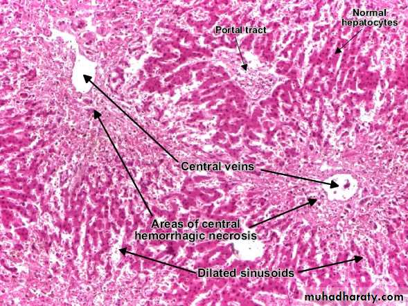 Hepatic congestion, (nutmeg liver)