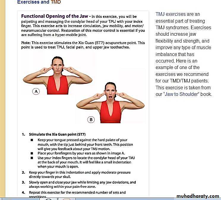 • Another exercise includes stretching the jaw muscles by making various facial expressions