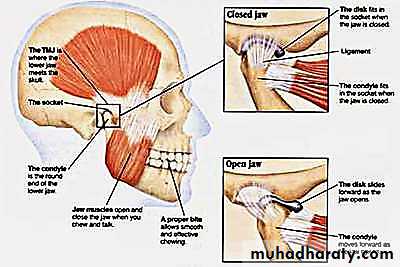 • muscles that control jaw function.• Internal derangement of the joint involves a displaced disc, dislocated jaw, or injury to the condyle.